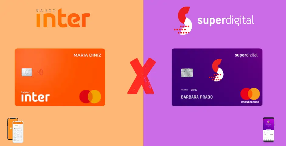 Apesar de serem internacionais e da mesma bandeira (Mastercard), os cartões de crédito dos bancos se diferem muito, já que o serviço do Inter é tal qual um cartão de crédito comum, podendo ser operado com pagamento escalonado e com fatura posterior, enquanto o do Superdigital é um pré-pago, onde você deposita um dinheiro na sua conta e, ao utilizá-lo na versão crédito, ele debita direto no saldo, funcionando como um cartão de débito, já que não permite parcelar suas contas.